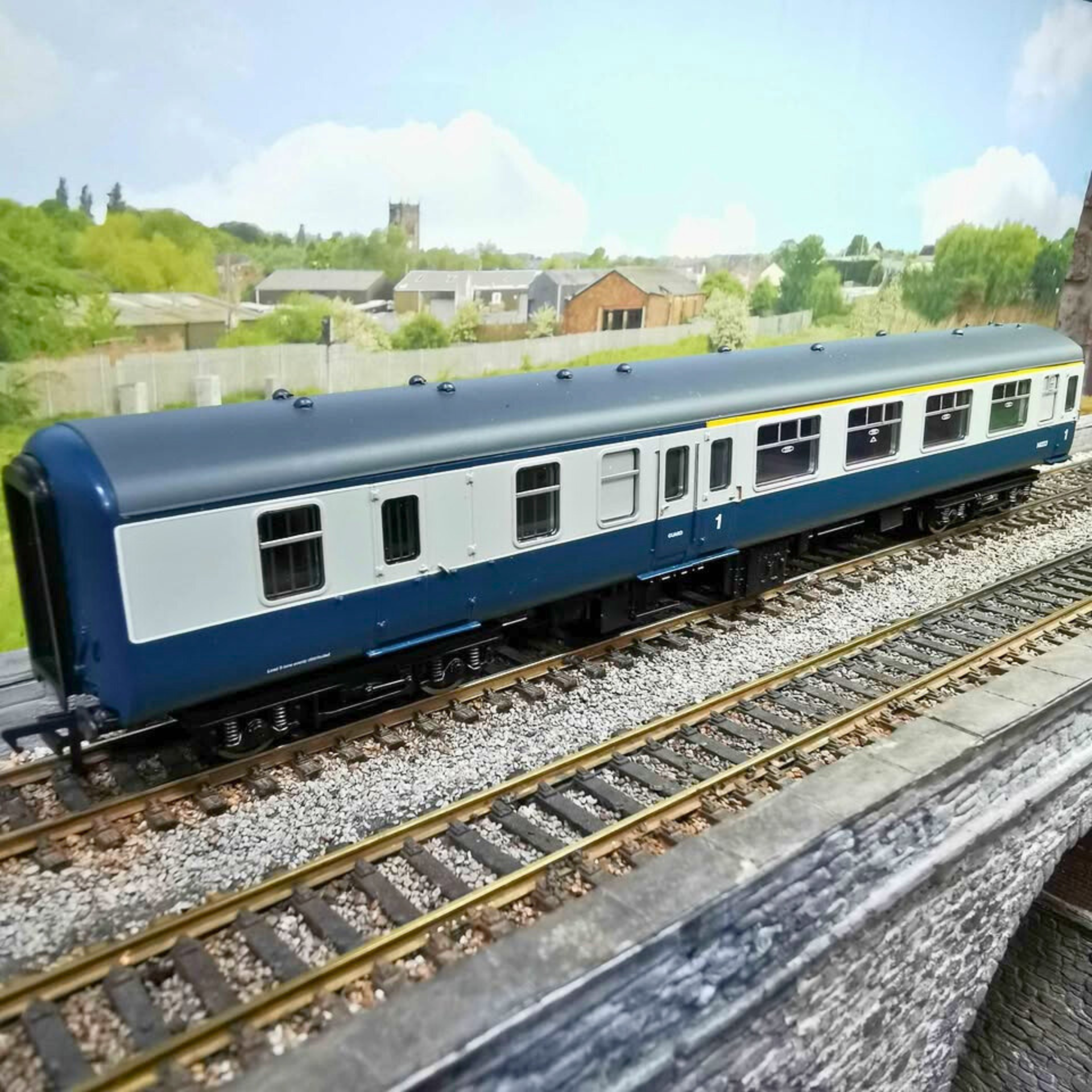 This Bachmann OO gauge BR Mk2 first class brake corridor coach (Ref. 39-400) captures authentic railway heritage in striking blue and grey livery. Featuring metal wheels for smooth operation and complete original buffers and couplings, this boxed model includes a connecting bar for seamless coupling with other coaches. An exemplary addition to any serious model railway collection, offering both historical authenticity and reliable performance.