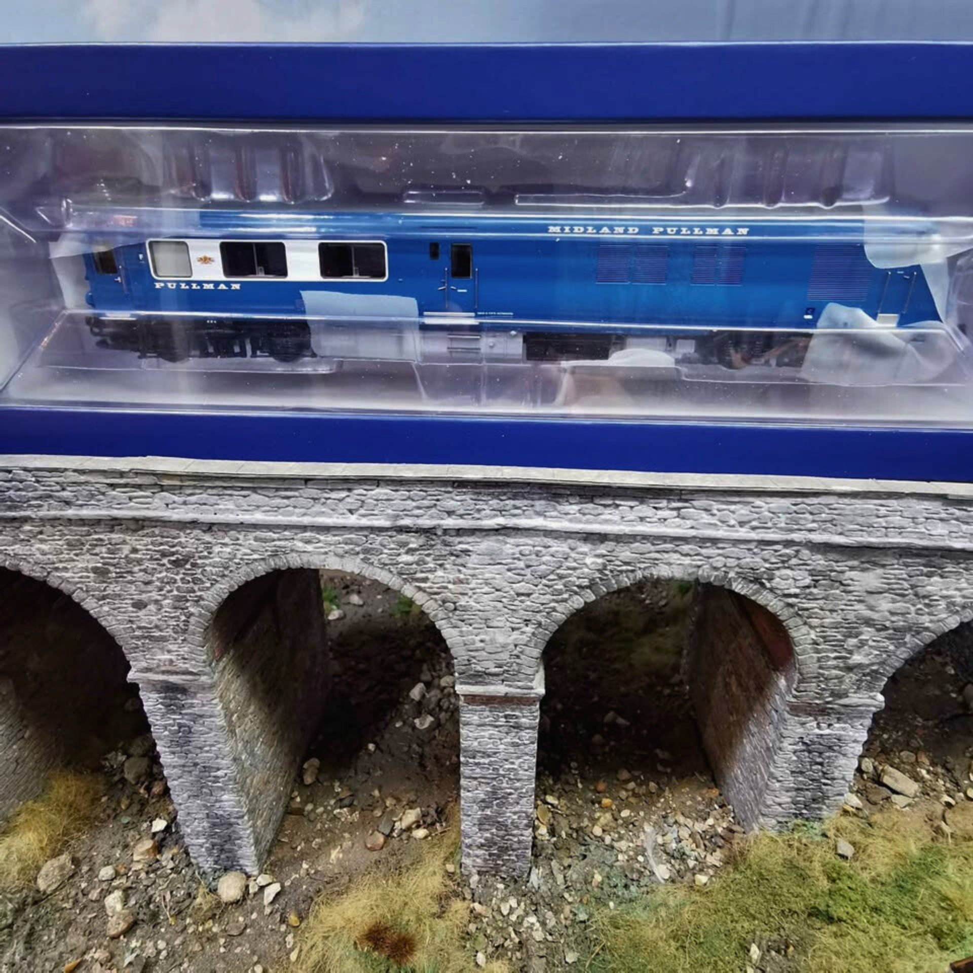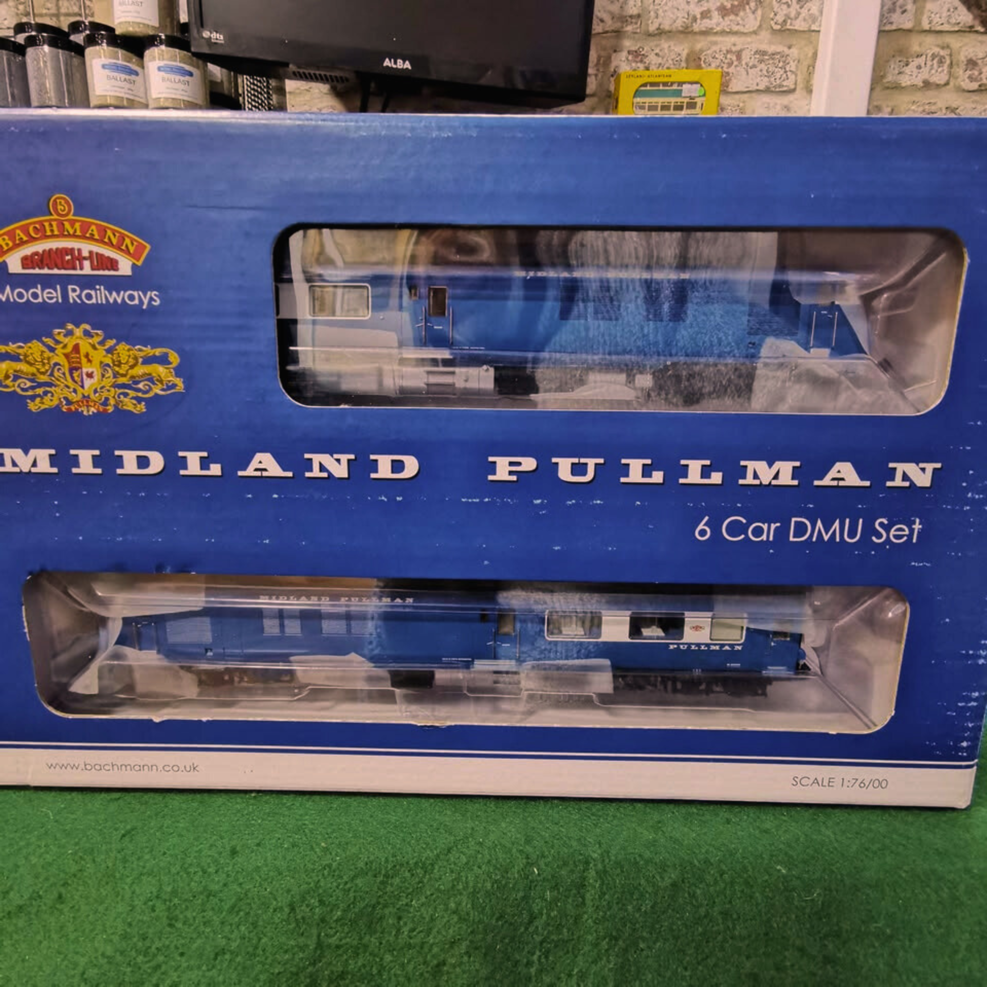 This exceptional Bachmann Midland Pullman six-car unit showcases the elegance of 1960s railway design in authentic Nanking Blue. Despite being classified as used due to missing original paperwork, the train remains in pristine condition throughout, still wrapped and untouched. Pre-fitted with DCC technology and comprehensive interior lighting, it's ready for immediate operation on your 00 gauge layout. The original box displays only the most subtle handling marks, befitting a model that has been carefully preserved. A distinguished addition for discerning collectors and enthusiasts seeking authentic heritage railway representation.