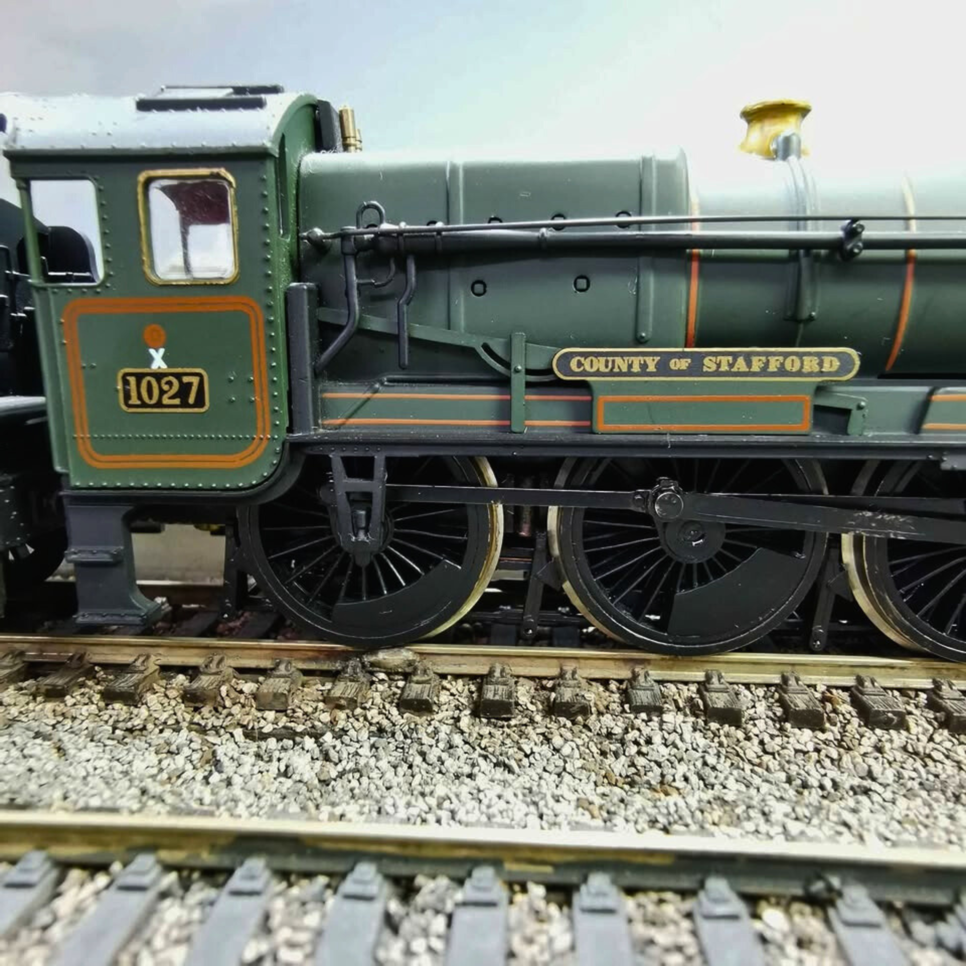 This Hornby 4-6-0 County Class locomotive, number 1027 'County of Stafford,' is presented in classic BR Green. Recently serviced, this analogue model operates smoothly in both directions, ensuring reliable performance. Though it comes without its original packaging, all buffers remain intact, preserving its authentic detail. A refined choice for collectors or enthusiasts seeking a well-maintained representation of British railway heritage in 00 gauge.