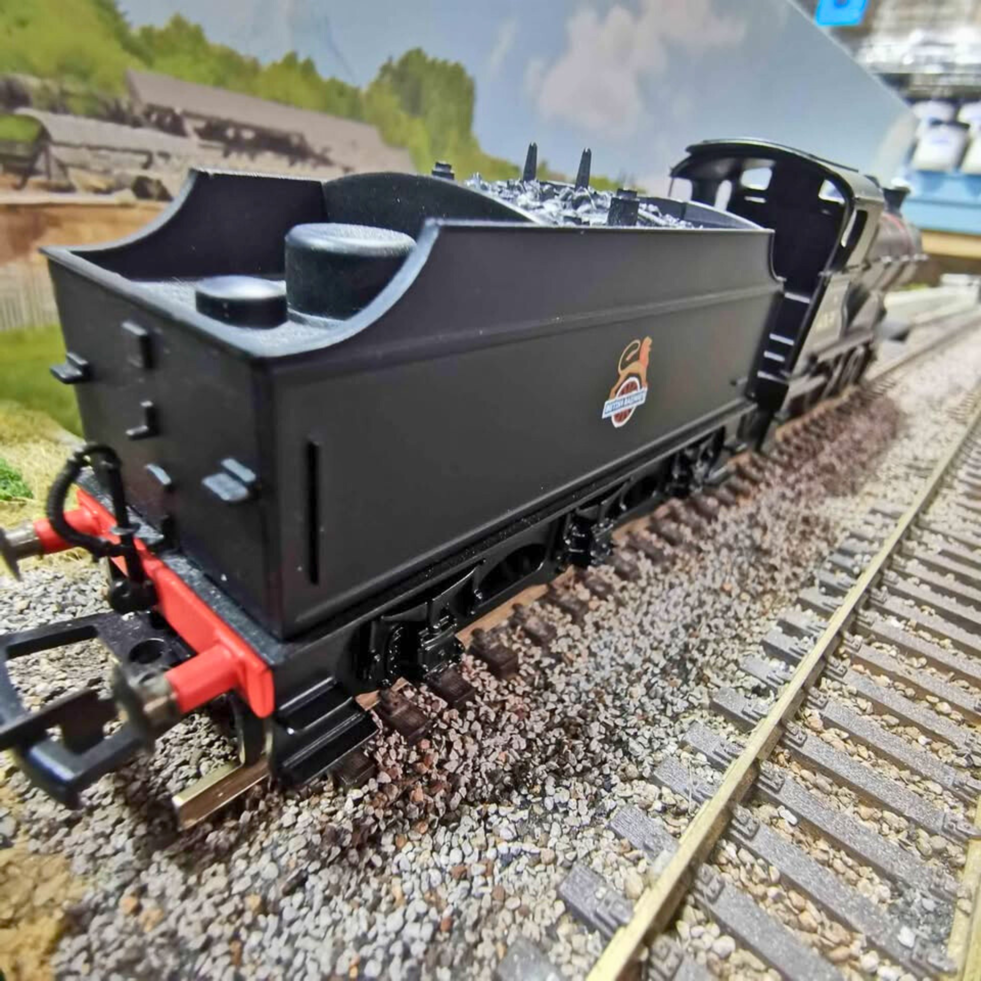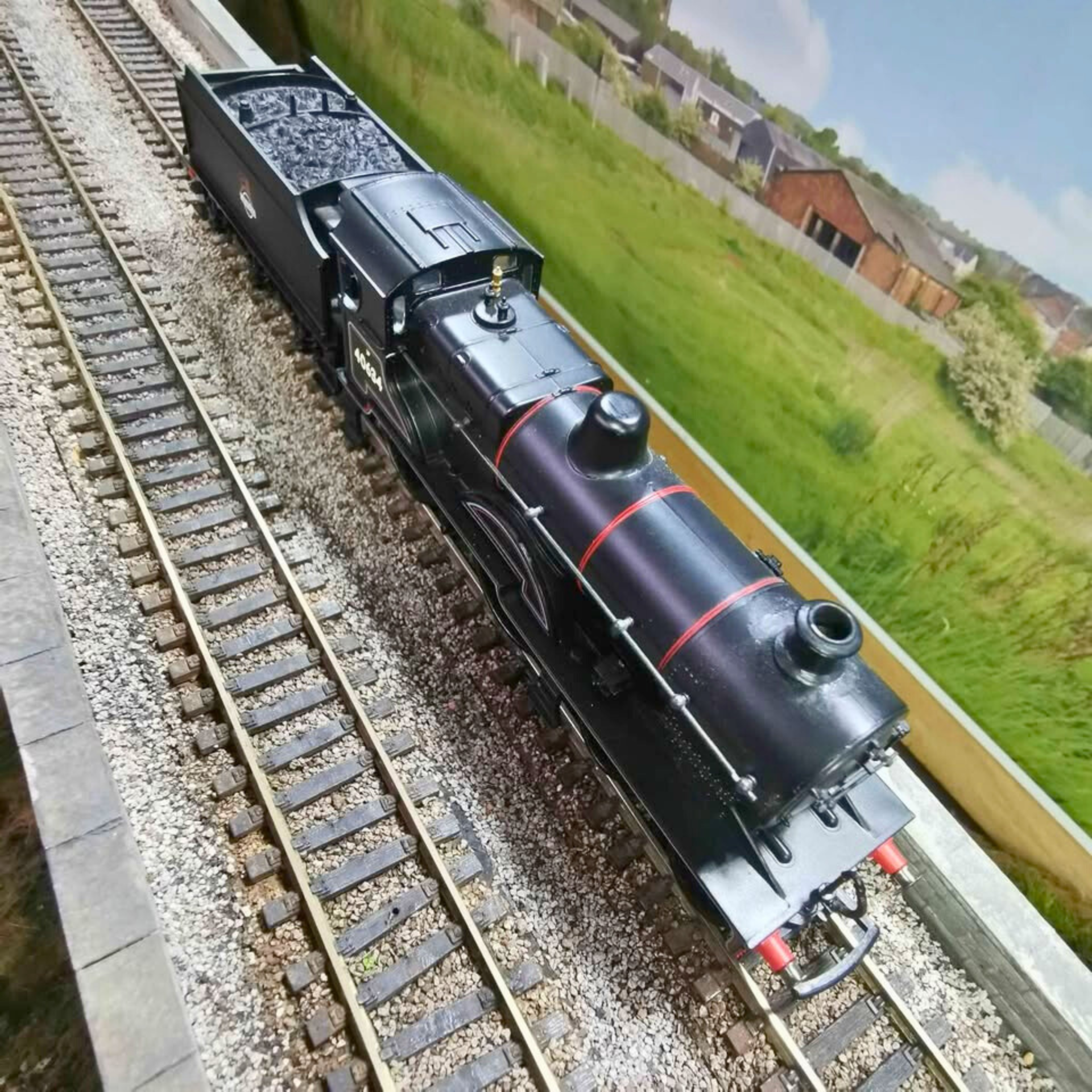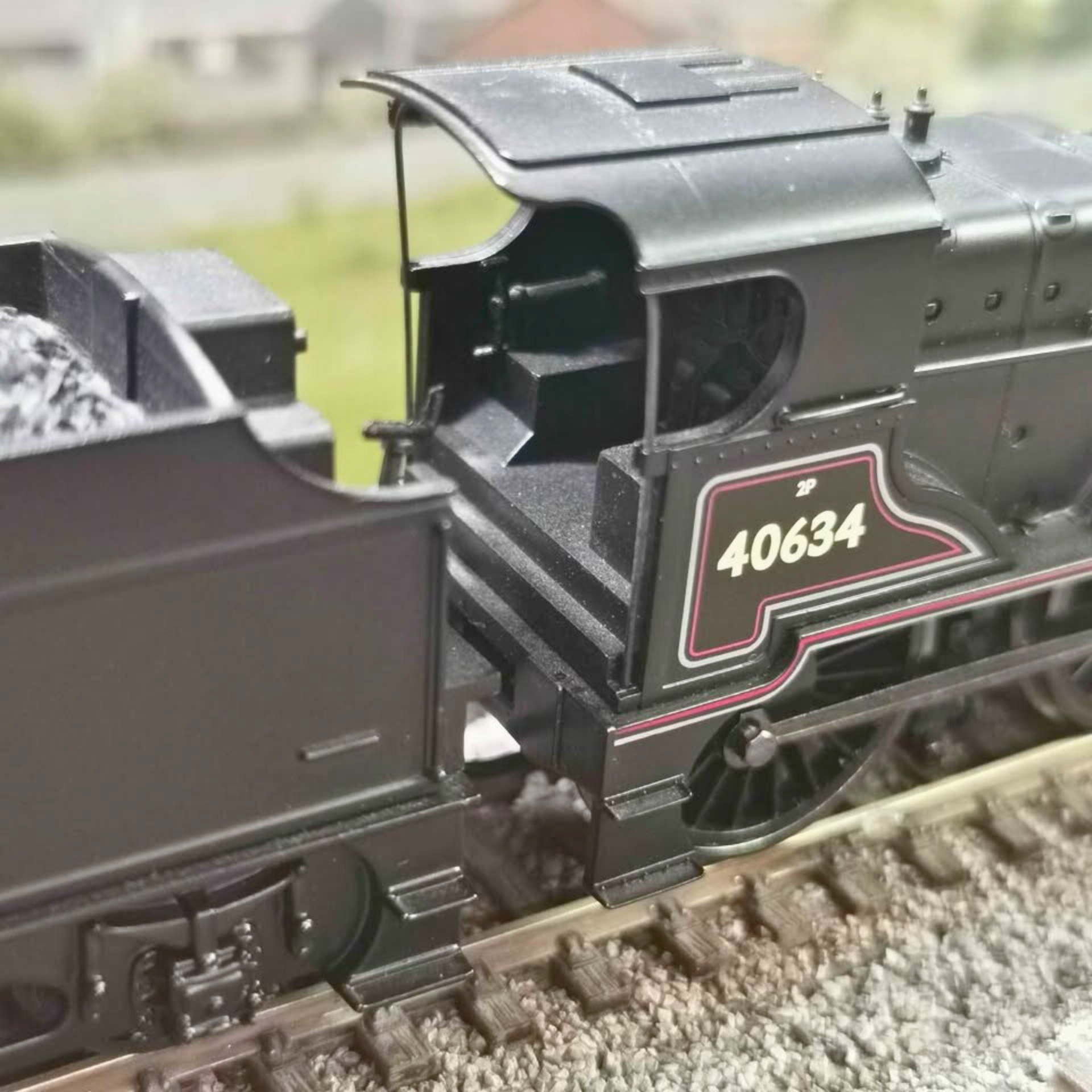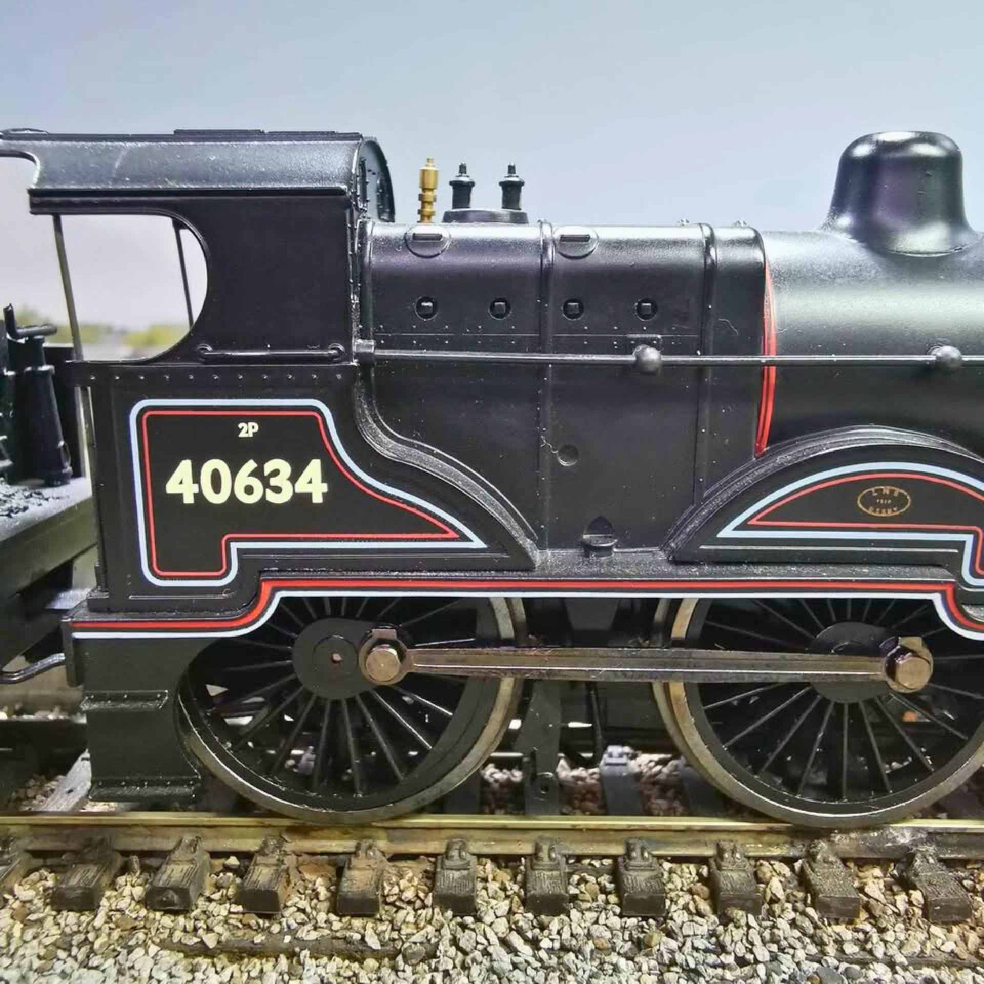 A distinguished Hornby Class 2P 4-4-0 locomotive finished in authentic BR lined black livery with early crest detailing. This tender-driven model has been tested and runs smoothly in both directions, delivering reliable performance on your layout. Please note the front coupling hook requires replacement and the original packaging is not included. A fine addition for serious OO gauge collectors and operators.