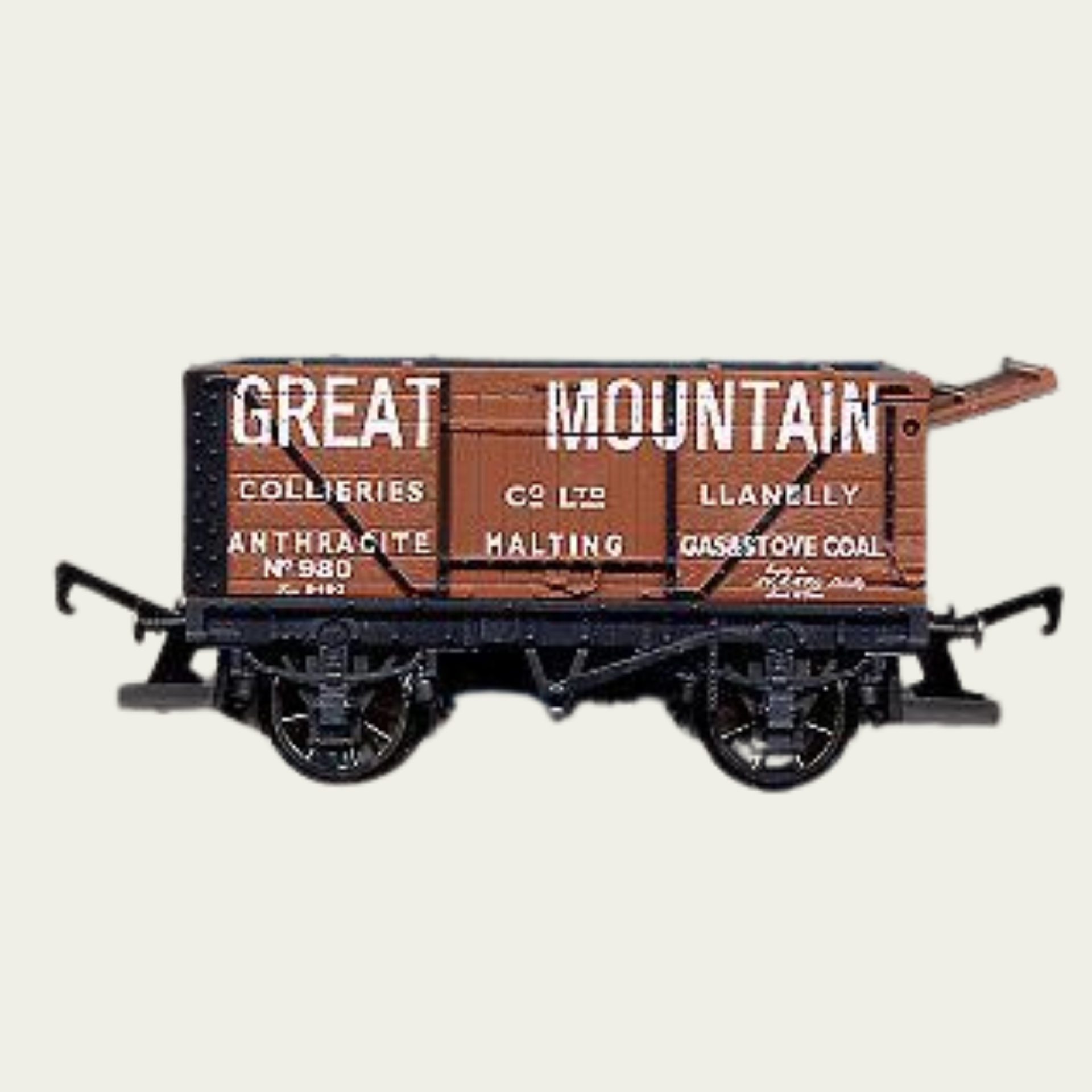 This authentic Hornby OO gauge end door tipping wagon captures the industrial heritage of Great Mountain Collieries with meticulous period detail. Finished in the colliery's distinctive livery and numbered 980, this model faithfully represents the robust freight wagons that served Britain's mining operations. The functional tipping mechanism allows for realistic operational play, whilst the precision engineering and authentic weathering reflect Hornby's commitment to scale accuracy. An essential addition for enthusiasts building authentic colliery branch lines or comprehensive freight consists.