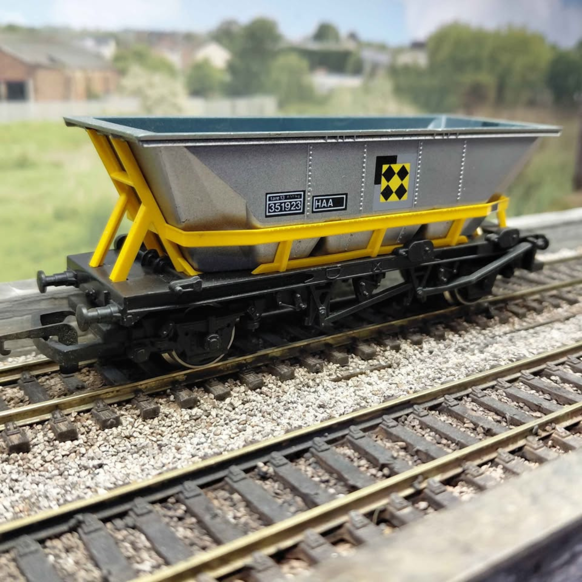 A distinguished pair of pre-loved Hornby HAA merry-go-round hopper wagons finished in authentic Speedlink livery. These OO gauge models showcase exemplary condition throughout, with crisp detailing and vibrant paintwork. Ideal for collectors seeking quality rolling stock or those expanding their freight train consists. Available individually priced at £12.50 each or as a pair for £22.