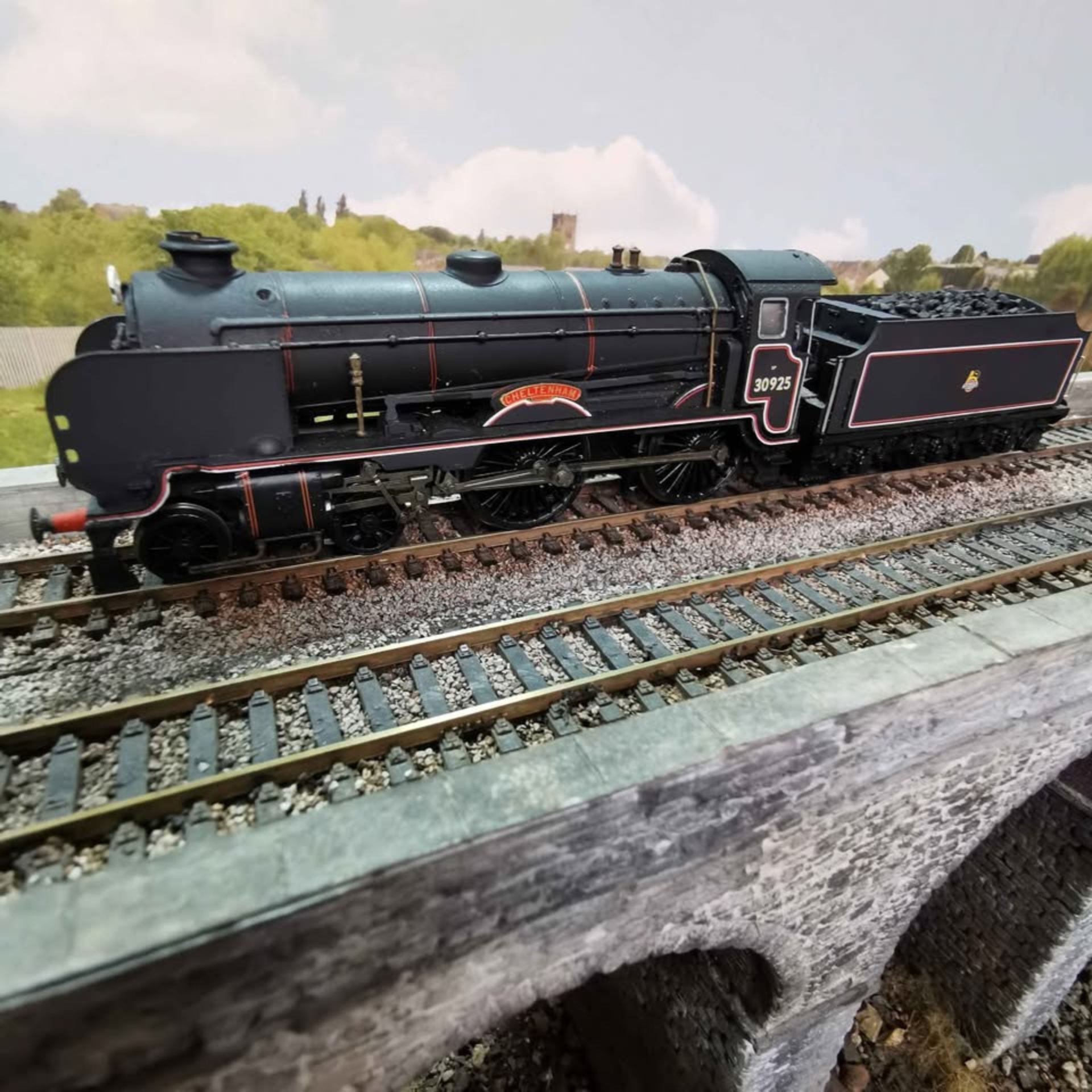 This finely detailed Hornby Schools Class 8P locomotive, numbered 30925 and named "Cheltenham," is exquisitely re-painted and relined in early British Railways black. Featuring mixed traffic indicator discs, a tender full of coal, and a fixed crew in the cab, it operates smoothly and reliably at all speeds in both directions. A superb model for collectors and enthusiasts seeking authenticity and performance in '00' gauge analogue railways.