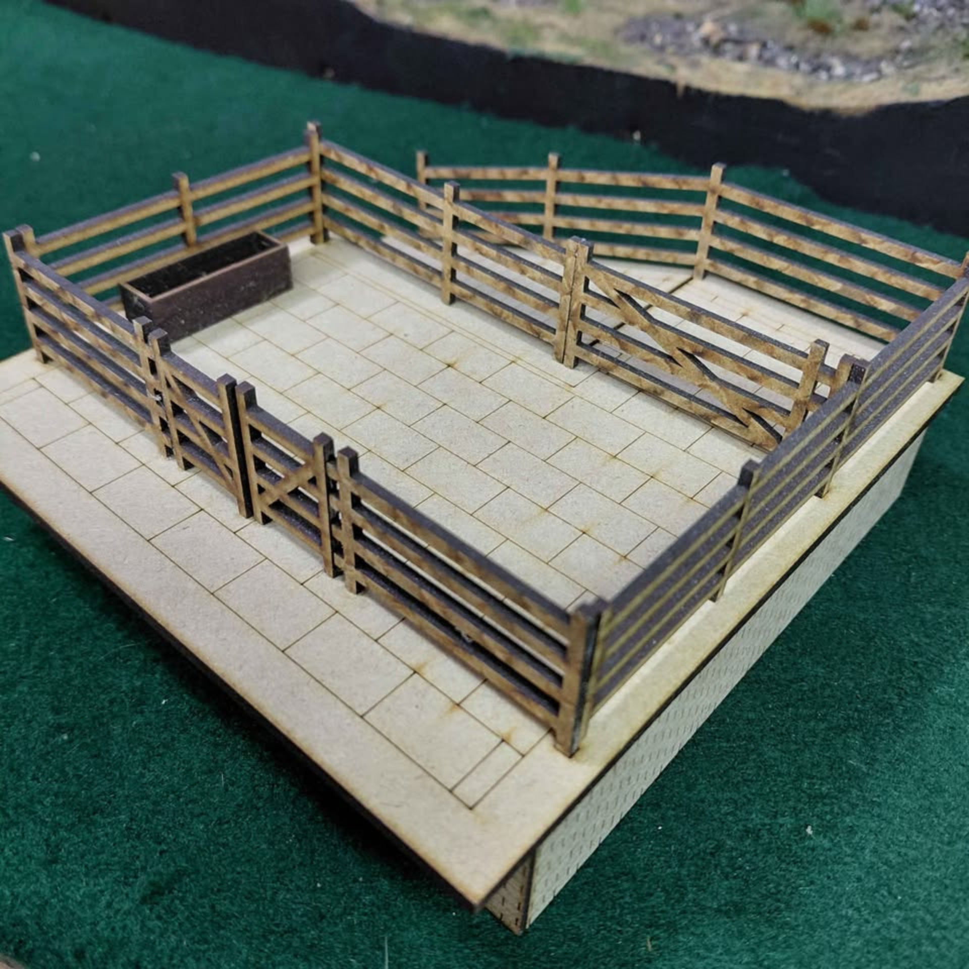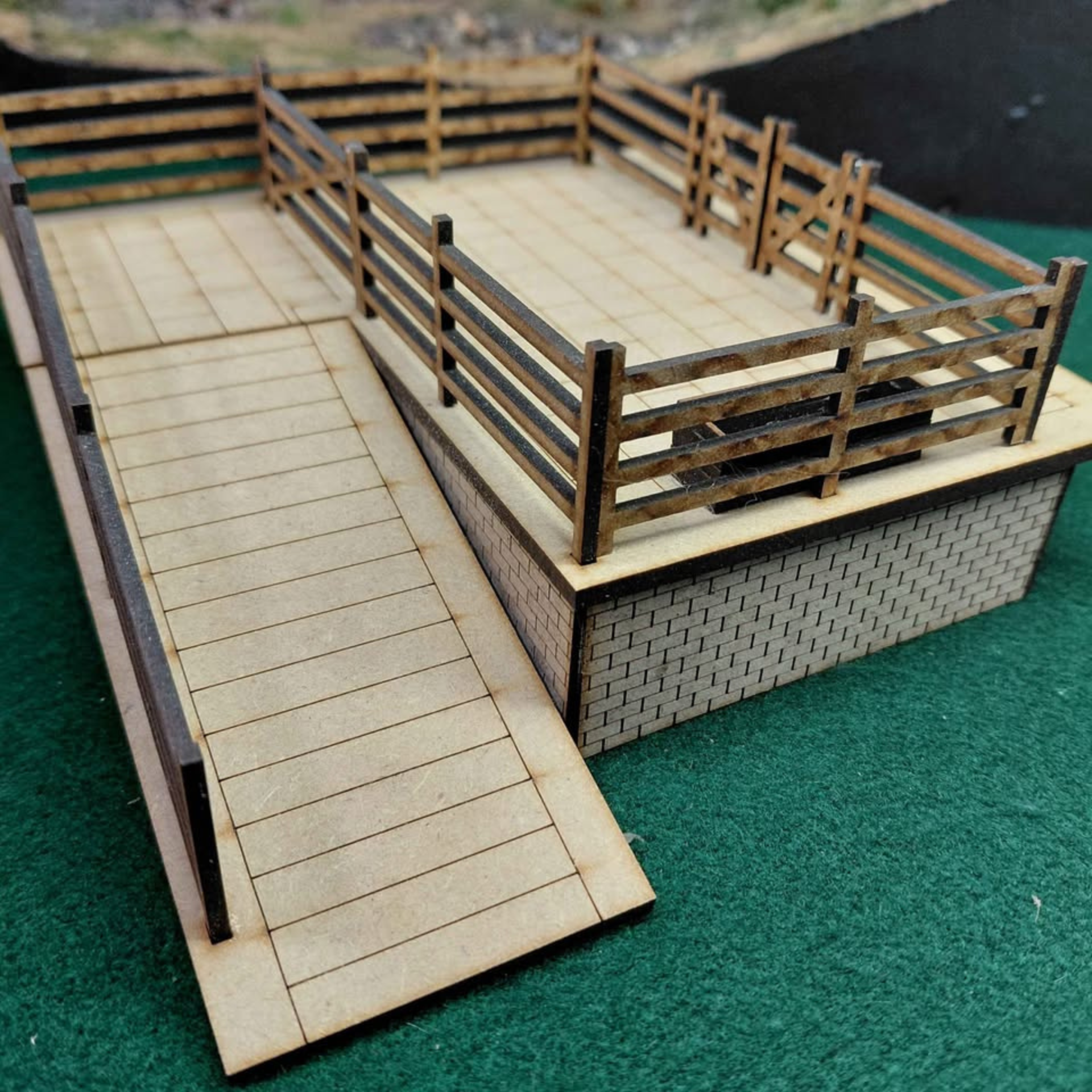 This O gauge cattle dock represents a refined addition to any model railway layout. Constructed using precision laser-cut components, the structure features ramped access, gates, and an integrated feeding trough. Each element capturing the functional character of a working agricultural facility. An ideal centrepiece for rural or mixed-use railway scenes. Perfect for collectors and enthusiasts seeking to enhance their layouts with period-appropriate infrastructure and detail.