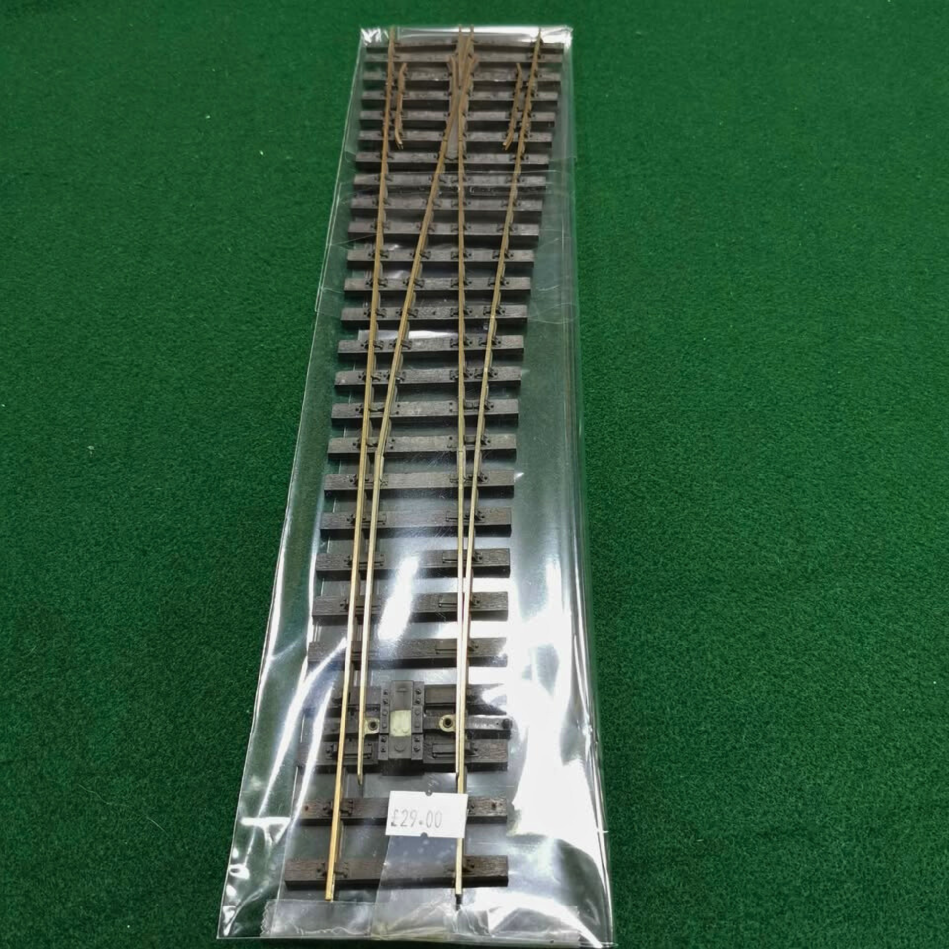 Three pre-owned 0 gauge Peco points, two left hand, one right hand in really good order.